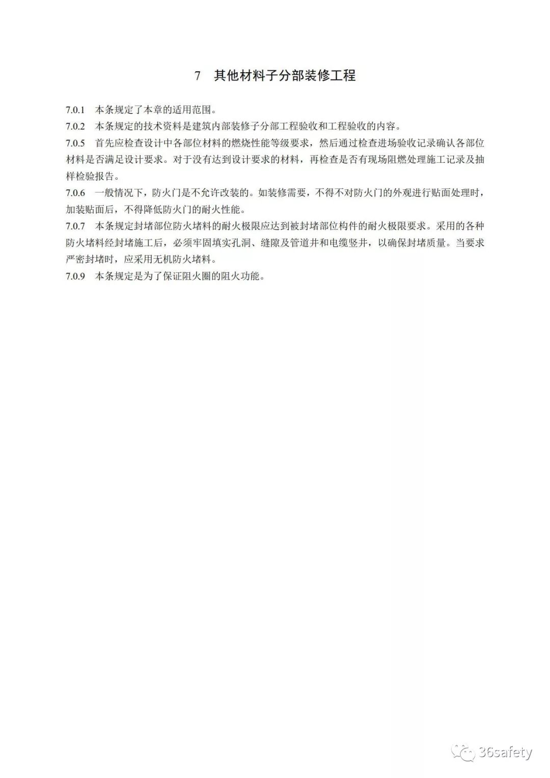 1.0.4 本条规定了本规范与其他规范、标准的关系。建筑内部装修防火施工,不应改变装修材料以及装修所涉及的其他内部设施的使用功能,如装修材料的装饰性、保温性、隔声性、防水性和空调管道材料的保温性能等等,其施工与验收应满足所有相关规范的要求。
