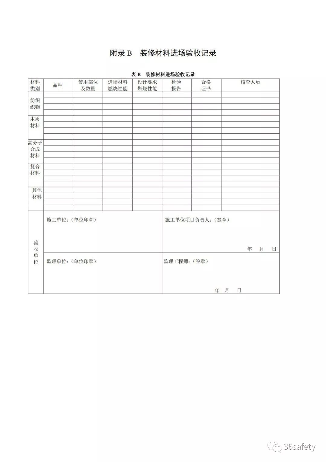 2.0.4 所有防火装修材料的燃烧性能等级应按本规范附录B的要求填写进场验收记录。对于进入施工现场的装修材料,凡是现行有关国家标准对其燃烧性能等级有明确规定的,可按其规定确定。如天然石材在相关标准中已明确规定其燃烧性能等级为A级,因此在装修施工中可按不燃性材料直接使用。凡是现行有关国家标准中没有明确规定其燃烧性能等级的装修材料,如装饰织物、木材、塑料产品等,应将材料送交国家授权的专业检验机构对材料的防火安全性能进行检验确定。
