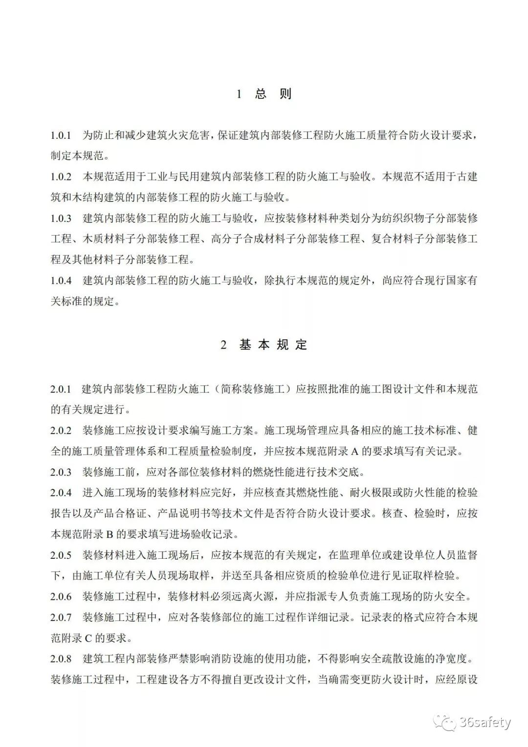2.0.1 建筑内部装修防火施工应符合施工图设计文件并满足本规范的要求。